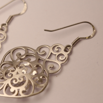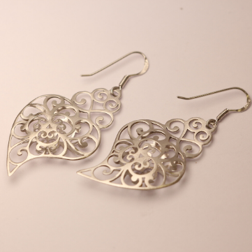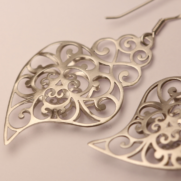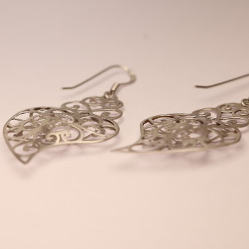 Brincos em prata 925 (corações estilizados) (corte a lazer) com banho de Ródio.